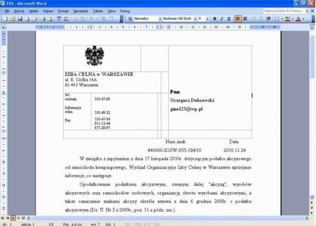 OTO ICH ODPOWIEDZ, ktora dostalem dzisiaj...