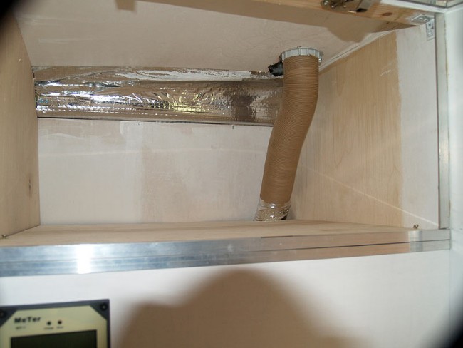 Widoczny tylko kawałek łączenia komina od trumy. Mam łatwy dostęp do całości. Odkręcam dwa wkręty i ściągam półeczkę a tam mam już komin na tacy.