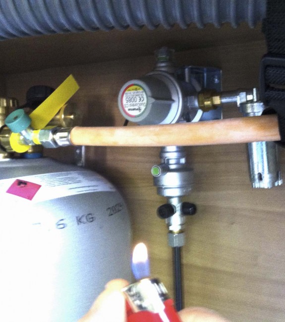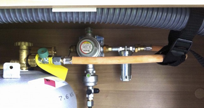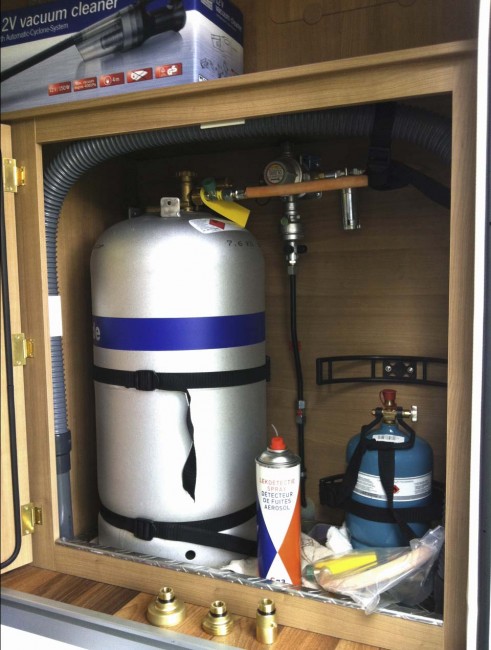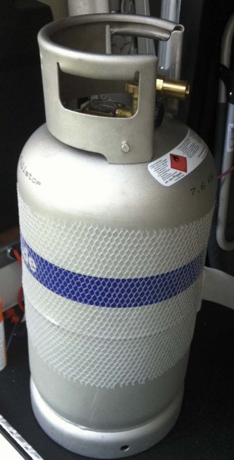 Zamontowałem butlę LPG aluminiową z zaworem odcinającym 80%. Wersja powiększona 14 kg. Weszło do niej 27,3 litrów gazu.