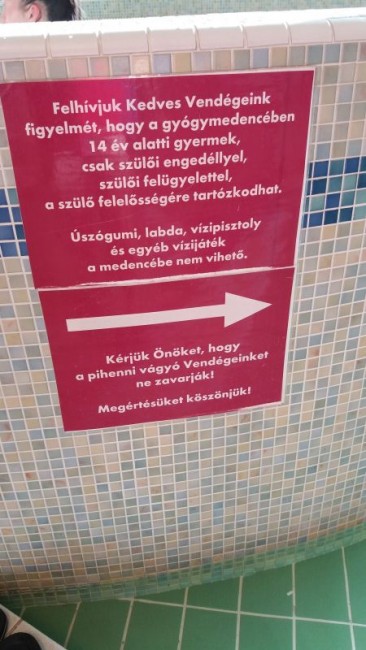 Każdy basen jest bardzo dobrze oznakowany tablicami informacyjnymi. Jeżeli do jakiegoś basenu wchodzenie dzieciom w wieku do 14 roku życia jest niezalecane, to jest to wyraźnie opisane. Termy mają wiele basenów preferowanych właśnie dla dzieci. I tam dzieci jest bardzo dużo. Wystarczy tylko czytać informacje na wspomnianych tablicach.