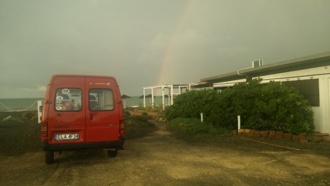 Jest już dość późno a Świstaków wciąż nie ma. Dzwonię do Arka i słyszę "ku... itd. itp. Strzeliła nam opona na przodzie :gwm " O kurde - na szczęście nic im się nie stało. I to wszystko na autostradzie w ciemnościach bo to już noc przecież. Arek mówi, że i tak dojadą. Za jakieś dwie godziny pojawili się zmęczeni po trudach wycieczkowych przed kampingiem. Nie było sensu tym wielkim samochodem manewrować po nocach na placu. Więc zostają na upatrzonej wcześniej przeze mnie miejscówce bezpośrednio nad morzem. Popijamy jeszcze przy pogaduszkach świstakową tofik-wódkę i herbatkę. Aj - był teź pyszny bigos przygotowany przez Asię :) Długo tak nie siedzimy, może z godzinkę. Pora po trudach dnia na spanko.