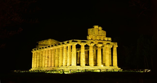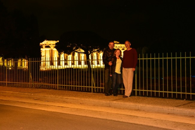Wieczorem udajemy się jeszcze na zewnętrzne zwiedzanie Paeustum. Asia chce porobić zdjęcia pięknie oświetlonym ruinom greckim.