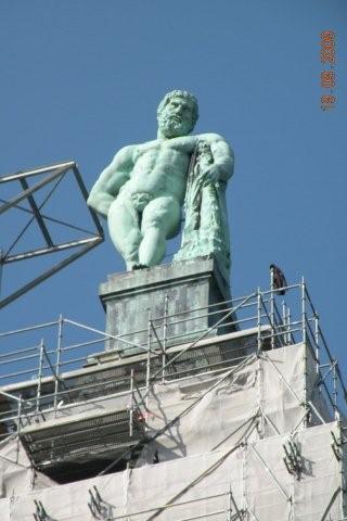 Warto zobaczyć HERKULESA w KASSEL.Duży obiekt z pięknymi kaskadami i pałacykiem na dole.Niestety był remont i woda nie płyneła: