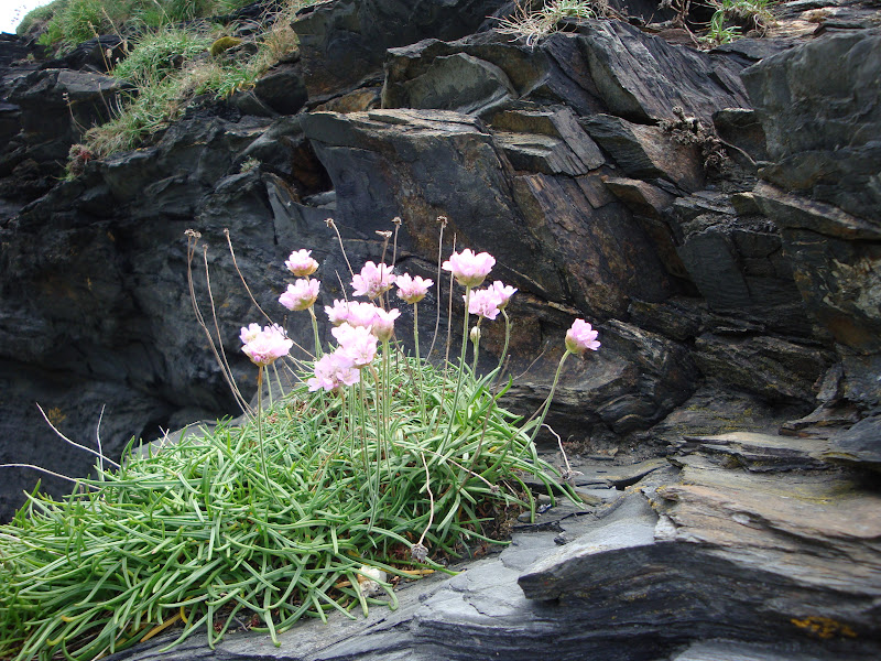 Tu widać doskonale budowę skały, poszczególne warstwy łupków i sfalowania skały. Na takim niegościnnym podłożu kwiaty jakoś sobie radzą.