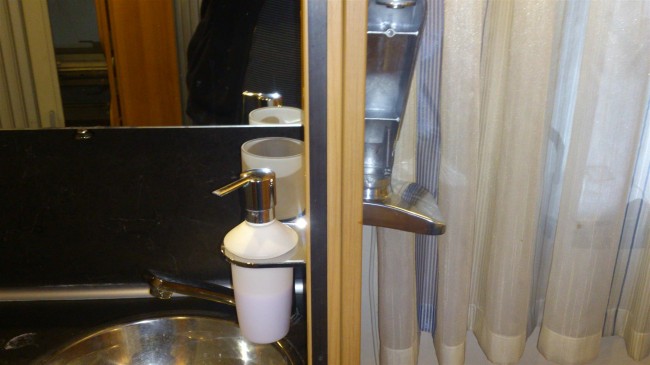Mocowanie wysięgnika na ściance łazienkowej, w celu zamaskowania śrub przelotowych od strony łazienki zamocowałem wieszak na kubek