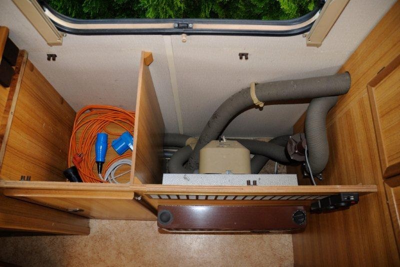 Jeśli masz bojler Truma (co jest bardzo prawdopodobne) to obejdź kampera dookoła znajdź na ścianie kratkę wylotu spalin i po drugiej stronie ściany (tzn w środku kampera) powinien być bojler.