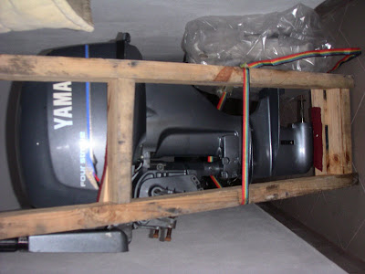 Kolego zrób tak jak to robią wszyscy handlujący częściami samochodowymi,tzn.walnij ten silnik na starą oponę i nie przejmuj się czy sie porysuje.On ma pchać Twoją łódż a nie być obiektem westchnień.