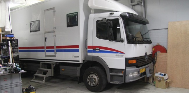 Ze względów praktycznych i finansowych do zabudowy chcę wykorzystać gotowy kontener izoterma (lub wręcz chłodnia czy mroźnia) o długości 5,0 - 5,5 m, wysokości wewnątrz około 2 m i szerokości na jaką pozwalają przepisy czyli 2,55 - 2,60 po zewnętrznej. Drzwi boczne i drzwi tylne. Całkowita długść auta nie powinna przekroczyć 7,5m, a wysokość 3,20m. Z tyłu dokompletuję składaną rampę na motocykl, z boku pięcio metrową markizę rozwijaną elektrycznie, od spodu zaś przymocuję do ramy łatwo zdejmowalne zbiorniki na wodę białą i szarą.