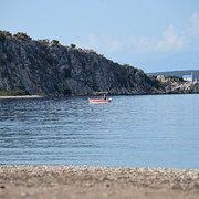 Tutaj, gdzie obecnie zakotwiczyliśmy widziałem dwie kobietki, Greczynki które łowiły z brzegu(plaży) na robaki podobne do dżdżownic, wygrzebanych z piachu na plaży. Technika rzutu podobna do rzutu młotem. Bez wędziska. Rybki takie po 5-10cm im brały.