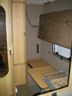 Dolne łóżko można złożyć zamykając(oddzielając)przestrzeń garażową od mieszkalnej tym samym z pomieszczenia bagażowego tworzy się pomieszczenie garażowe w którym swobodnie można przewozić skuter a nawet motor.