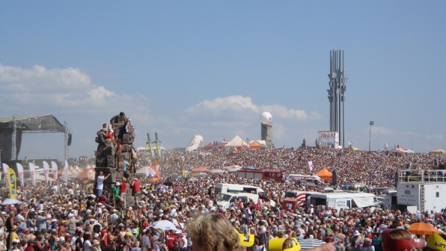 2010.07.17 so Grunwald 034.JPG To tylko część widowni, która była dookoła pola bitwy, niewidocznego na tym zdjęciu, bo było na prawo tego widoku. |