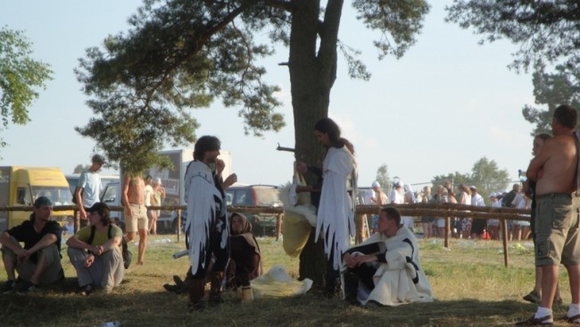 Obok nas przez 3 dni prezentował się ten pan, co na zdjęciu poniżej. Temat widniejący na jego namiocie brzmiał górnolotnie "Debata Średniowieczna", a... chrzanił głupoty na tematy bierzące... jak zwykle zresztą.