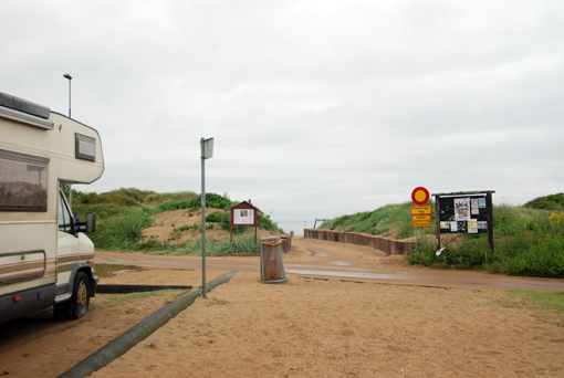 Rankiem odjeżdżamy dalej na południe. Jedziemy E-6 która tu pełni rolę autostrady. Choć uważamy, że kamper na autostradzie to bluźnierstwo. Skręcamy do Halmstad, które okazuje się uroczym miastem z ciekawą starówką. Pogoda się poprawia, a biurze IT odbieramy swietny plan miasta. Jego analiza pokazuje coś ciekawego nad brzegiem morza. Po kwadransie wjeżdżamy na niewielki placyk zajęty przez kampera. Jest woda i roaleta. Do morza 100 m. Wokół pustkowie.