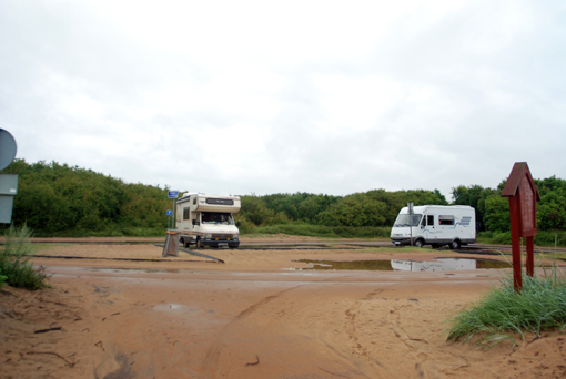 Noc okazuje się tragiczna. O północy spada gigantyczna ulewa. Huk spadającej wody na dach i prawy bok denerwuje nawet Kamę. Rano bez kaloszy ani rusz. Oba kampery stoją w kałużach.