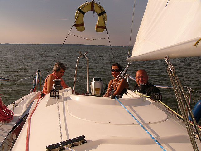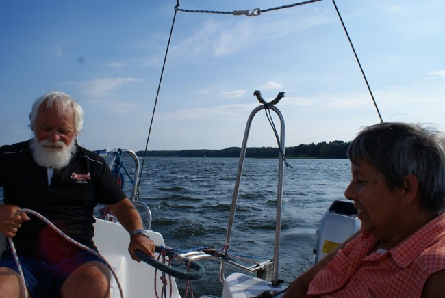 Należy jednak wyeksponować to co okazało się dla Halszki i dla mnie szczególnie miłe. Otóż byliśmy świadkami prawdziwego zauroczenia żeglarstwem. Popatrzcie na Sylwię, a zrozumiecie co mam na myśli.