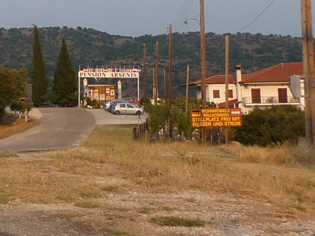Zjeżdżamy w dół i skręcamy na Sykaminea. Droga wspina się, ale dość łagodnie. W kilku mijanych po drodze wioskach jest możliwość uzupełnienia wody. Zjazd do Leptokarii – serpentynami i znów nad morzem. Z braku innej możliwości na noc stajemy na parkingu przy autostradzie na wysokości Litochorio.