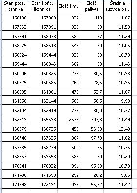 bardzo fajna tabelka ale na ten rok proponuje jeszcze jeden slupek ,ktory bedzie mowil o cenie za jaka kupisz paliwko : |
