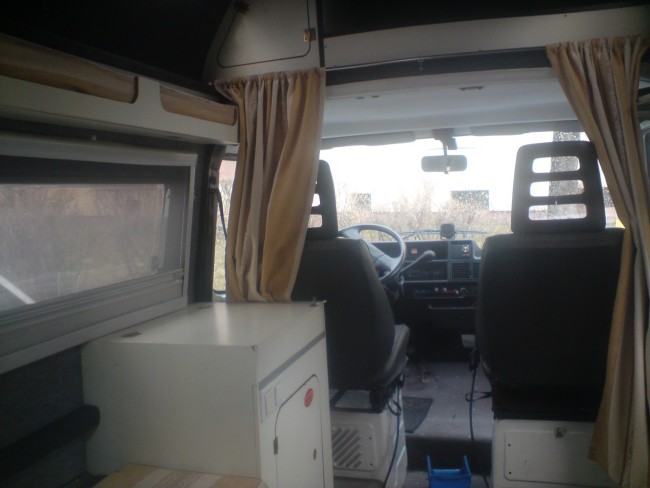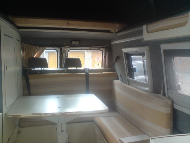 Przerobiłem tamtej zimy już całą górę /górne kojo / teraz m.in.: przerabiam cały dół /nowa dolna kanapa pod oknem +stolik / Położenie kuchenki gazowej za kierowcą , umywalka w świetle drzwi praesuwnych a lodówka ......... w siedzisku dolnej kanapy .