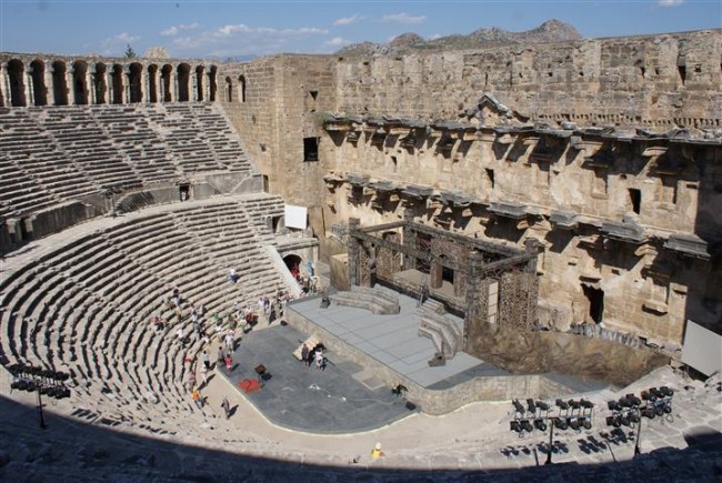 38 km dalej wstępujemy do Aspendos. Znajduje się tu znakomicie zachowany amfiteatr na 12 000 widzów.
