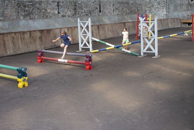 DSC03135.JPG W ujeżdżalni dziewczynki trenują na sucho |