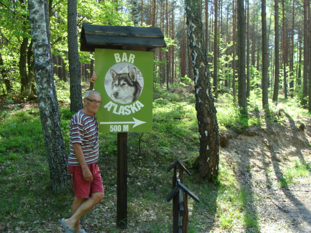 Nie to żebym chciał sprawdzić Wita, ale z czystej ciekawości zainspirowany Jego barwnymi opisami i zdjęciami wybraliśmy się z Markiem z TSC na A'Laskę. Już przejazd przez piękne lasy, przepiękne borowiska, urozmaicony krajobraz doje dużo przyjemności. Ta osada, bo na wiś za mała leży "na końcu Świata", tak jak przystało na Alaskę. W końcu dotarliśmy do celu. Pole namiotowe było puste, a przecież piękna ogoda powinna zachęcać do wędrówek i spływów. Z zabudowania nad wodą wybiegły dzieci, a następnie wyszedł sam Szeryf. Po ceremonii powitania po przebyciu długiej drogi pokazał nam miejsca gdzie możemy ustawić kampery, a właściwie to wszędzie, pokazał gdzie podłączenie do sieci i gdzie sanitariaty. Otoczenie pola bardzo ładne, w koło lasy, rzeka Zbrzyca. Jedyny stały budynek to sanitariaty i kuchnia turystyczna. Nie będę dublował pięknych opisów i zdjęć Witka i zajmę się sprawami socjalno-bytowymi. A więc zacznę od miejsca gdziewszyscy chodzą. Sanitariaty mieszczą się w pięknym drewnianym, krytym strzechą domku i tu miłe zaskoczenie - są przystosowane dla ludzi niepełnosprawnych, łączie z sygnalizacją wzywania o pomoc, czyściutko, ciepła i zimna woda, natryski czynne godzinach 18-21, ale można poprosić o inne godziny. I tu ciekawostka - można sobie napalić drewnem w piecu kuchennym i woda do kąpieli jest w 7 - 10 min. Jest kuchenka tylko na urządzenia elektryczne, no i można sobie grzać i gotować na płycie kuchennej. Teren słabo oświetlony, ale wystarczająco. Punkty poboru wody do kamperów i przyczep są 2, ale trzeba mieć własne węże. W odległości ok. 300-400 m jest sklepik GS. Trzeba przyznać, że na jego wielkość jest wystarczająco zaopatrzony, pieczywo trzeba zamawiać i zapisywać się z wyprzedzeniem, czynny w godzinach 11-15, a w soboty od 11-13. Z zasięgiem sieci jest różnie w różnych miejscach, ja w Orangu miałem a z innymi sieciami było różnie, do kościoła zdaje się jest 10 km. Najbliższe większe miejscowości to Swornegacie i Brusy. Istnieje możliwość wynajęcia pokoju w pięknej leśniczówce, ale ceny podobno nie należą do niskich i prawdopodobnie już wykupione na czerwiec - październik. O bankomat nawet nie pytałem.