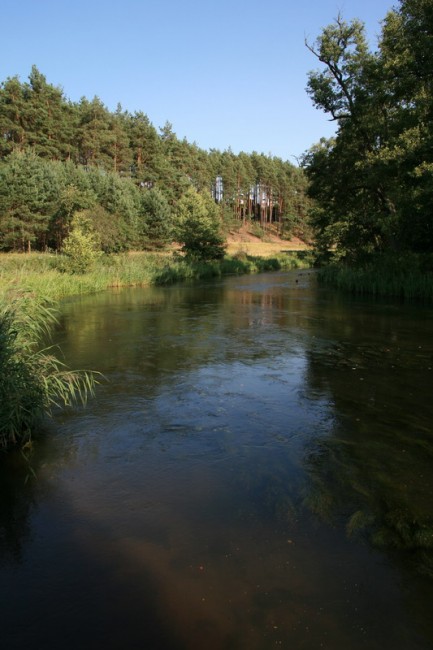 Pomachałem mu dłonią na do widzenia i popłynąłem dalej w dół rzeki. Ujście do jeziorka Szeczonek było już blisko. W pewnym momencie rzeka zrobiła się szeroka a przez to płytka i zacząłem szorować brzuchem po dużych, ciemnych od glonów, otoczakach. Wkrótce jednak znów zrobiło się głębiej i po chwili prąd wniósł mnie do jeziorka. Naraz, jakby na powitanie, otoczyło mnie stado płotek i okonków. Były wyraźnie zdziwione i zaciekawione widokiem nieznanej im istoty. Przepłynąłem powoli obok stada i wpłynąłem na jeziorko. Było to płytkie, niewielkie jezioro, z którego odpływ miał zanieść mnie do Zbrzycy.