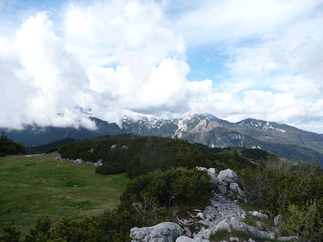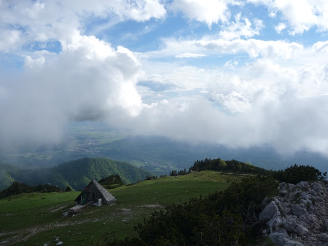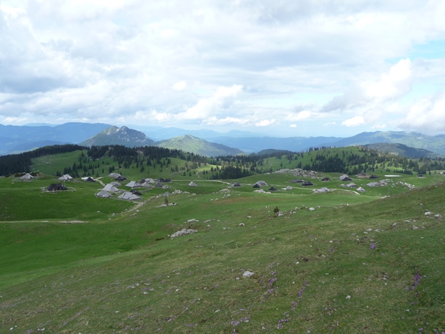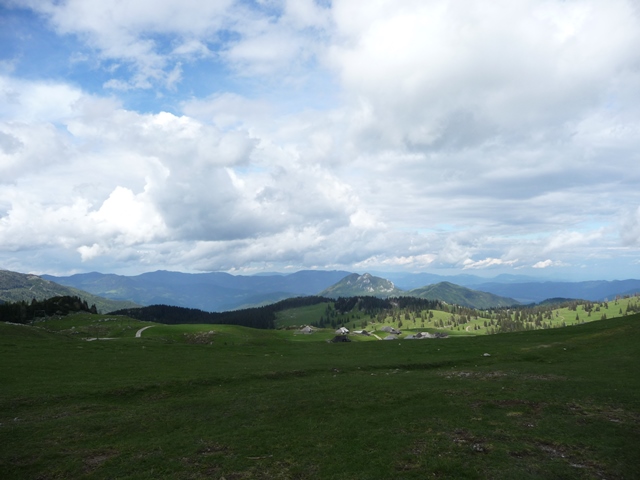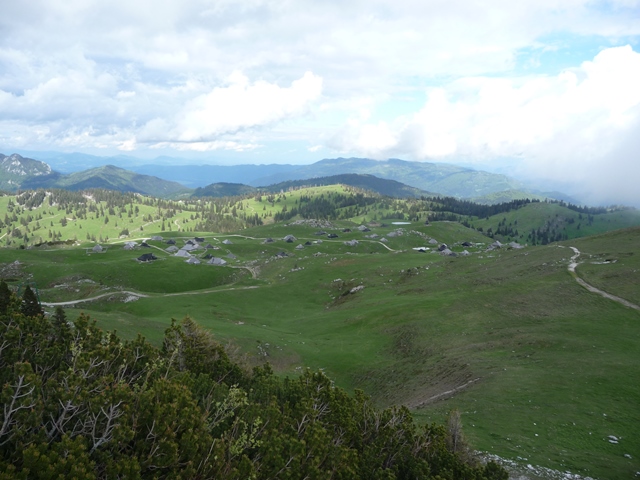 Po dotarciu na przełęcz pod szczytem przed nami rozpościera się widok zapierający dech w piersiach. Znaleźliśmy w przewodniku, że jest to miejsce, gdzie znajdują się tradycyjne bacówki, hale z owcami, ale spodziewaliśmy się kilku „marnych” sztuk jak u nas. Tym czasem przed nami jak okiem sięgnąć tradycyjne bacówki – dziesiątki, a nawet może i setki, a wszystko to rozłożone na pobliskich połoninach. Potrafi zadziwić - dla tych widoków warto było się wspinać	. A ta przestrzeń otoczona Alpami – tak tego nam było trzeba. Pogoda trochę kapryśna – co chwila przechodzą chmury robi się totalne mleko, by za chwilę znów wyszło słońce – nie ma się co dziwić w końcu to góry. Zejście z dół zajmuje już mniej czasu – trochę przyspieszamy by nie czekać kolejnej godziny na zjazd bo na piechotę byłoby ciężko. Jest co prawda na mapie szlak – ale wygląda na dłuuugi. W bacówkach w sezonie można kupić lokalne wyroby „oscypki” oraz znaleźć nocleg.