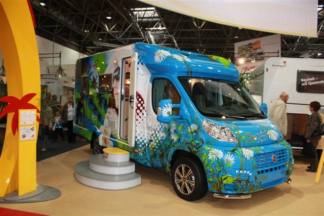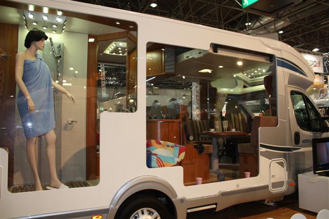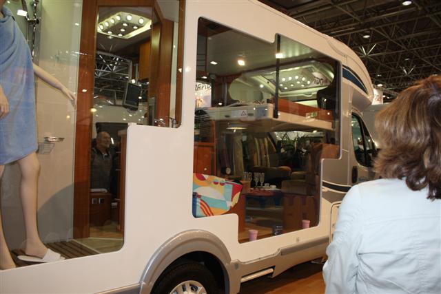 | W Dusseldorfie byłem trzeci raz z rzędu. Po tagach widać że branża zaczyna podnosić się po kryzysie. W zeszłym roku było źle co było widac na targach, mniej stoisk i w połowie pusty parking. W tym roku lepiej ale jeszcze daleko do tego co było w rekordowym 2008  kiedy nawet przestrzeń pomiędzy pawilonami była pełna ekspozycji no i zwiedzających. Na gigantycznym parkingu dla camperów widać spory procent camperów z górnej półki jak Carthago, Concorde itp. Firmy te miały tez największe stoiska targowe i największą ilość odwiedzających. Po ilości osób rozmawiających z handlowcami w boksie ze stolikami (kilkadziesiąt), można ocenić ilośc potencjalnych klientów a nie oglądaczy. Widać że na rynku rośnie sprzedaż camperów z półki powyżej 120 tys euro.