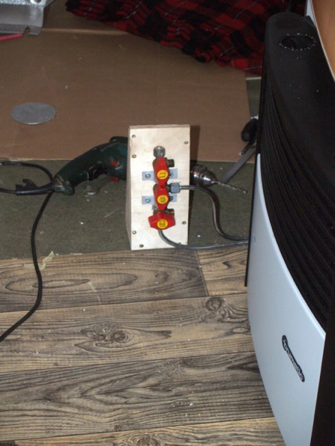 Zawory są tak zamontowane, że jak zrobię ścianę od łóżka to w środku tej ściany będą drzwiczki rewizyjne, poprzez które będzie łatwy dostęp do zaworów gazowych, zaworów spustowych wodnych oraz bezpieczników elektrycznych. Tak to sobie obmyśliłem.