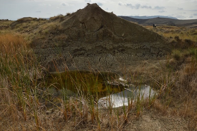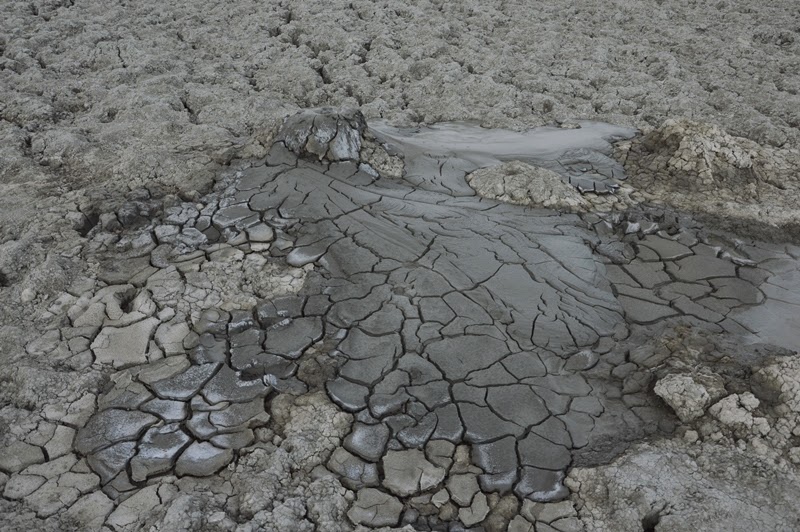 Podchodzimy do granicy błotek – teoretycznie dalej nie powinno się wschodzić, ale o tej porze roku błotka w większości są już przyschnięte. Jedynie w kilku miejscach czuje się miększy grunt. Jest też trochę bagienek, które sobie bulkają od czas do czasu, a czasem zaskoczą sporym (tak do metra) prychnięciem. Krajobraz kiężycowy – wokół dzikie okolice – gdyby tak błotko wciągnęło mogłoby być nieciekawie. Wulkany wyrzucają różne ciekawe kształty – coś Wam przypominają?