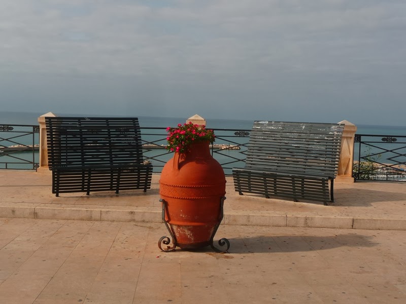 Sciacca – niby jej jeszcze nie znamy a już nam się podoba. Świetnie prezentowała się wczoraj w blasku zachodzącego słońca – dziś chcemy ją zobaczyć za dnia. Miasto położone jest na zboczu – wiele jednokierunkowych stromych ulic trzeba - uważać na skrzyżowaniach by się gdzieś nieopatrznie nie zabłąkać. Znaleźliśmy miejsce na postój tuż przed bramą wjazdową do miasta (od zachodu) chcieliśmy wjechać dalej, ale wystraszyliśmy się zony trafico – jak się później okazało niepotrzebnie (w wekeend mogliśmy tam wjechać, choć kluczenie po centrum raczej odradzam).