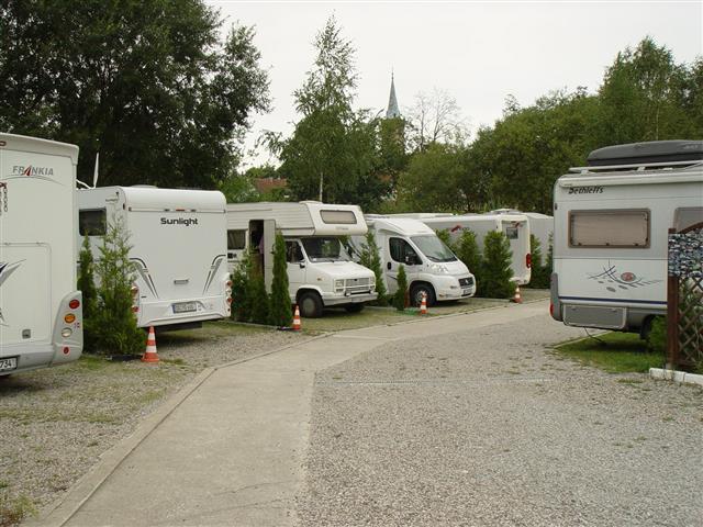 12_Mikołajki_camping.JPG Nasz weteran mocno wyróżniał się na tle pozostałych kamperów na parkingu w Mikołajkach... |