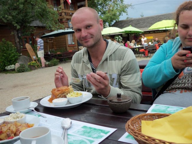 Za to kolejny przystanek poprawił nasze humory. Wieś Kruszyniany, czyli wioska tatarska. Zobaczyć można tutaj najstarszy w Polsce (i ciągle "czynny") cmentarz muzułmański oraz najstarszy meczet. Na pewno warto wybrać się do środka, gdzie jeden z mieszkańców wsi opowiada o historii Tatarów w Polsce, o samym budynku, cmentarzu, a wszystko wzbogaca historyjkami z życia i anegdotami (wstęp to zaledwie 5 zł). Naprawdę miło posłuchać... Po zwiedzaniu kroki skierowaliśmy do Tatatrskiej Jurty , bo tak nazywa się pobliska restauracja. Można tu spróbować autentycznych dań tatarskich, od wieków przygotowywanych przez pokolenia tatarskich gospodyń. Nie jest może zbyt tanio, ale porcje są ogromne, a jedzenie wyśmienite. My skusiliśmy się m.in. na pierekaczewnik - że się tak wyrażę - niebo w gębie...