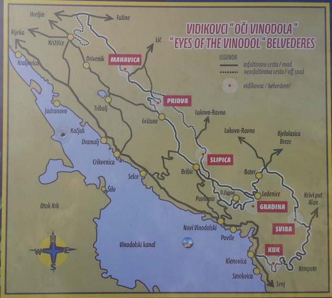 Aha, jeszcze miejsce widokowe niedaleko miejscowości Novi Vinodolski, trzeba wjechać w góry, później do punktu wskazanego ze współrzędnych. Wspaniałe miejsce z widokiem na doliny ale bez wody, więc nadaje się na przelotowy nocleg albo odpoczynek "od wszystkiego". Więcej takich punktów widokowych na załączonej mapce.