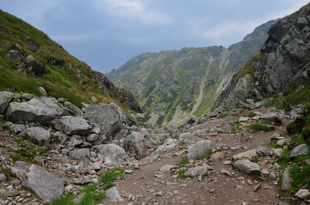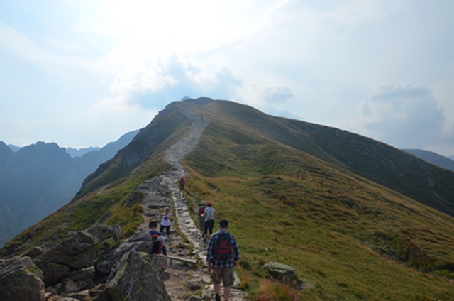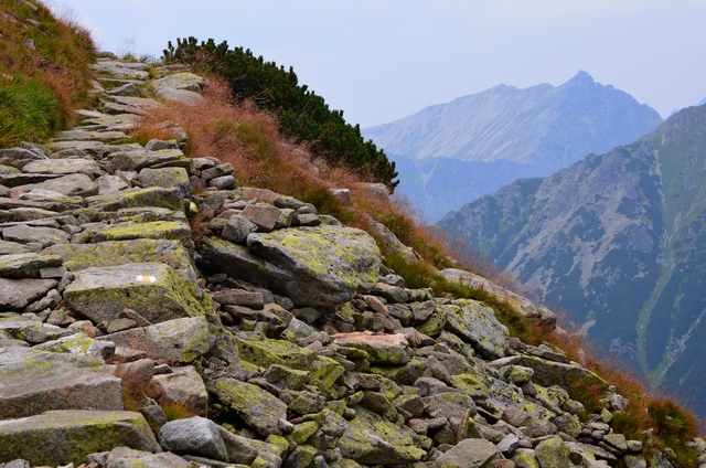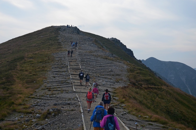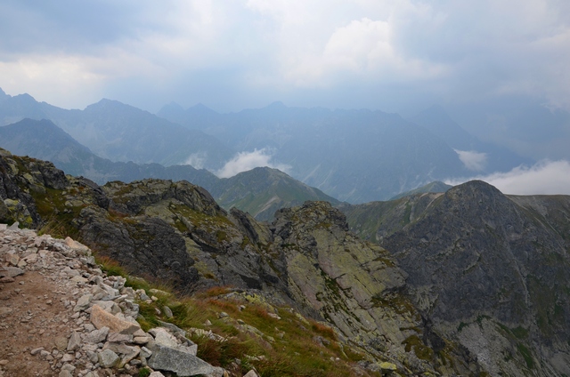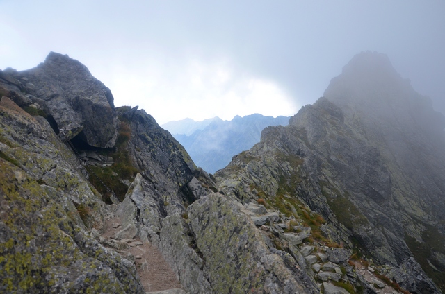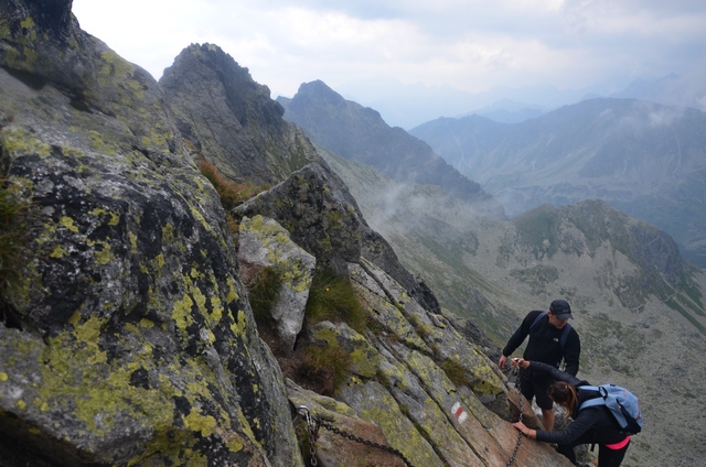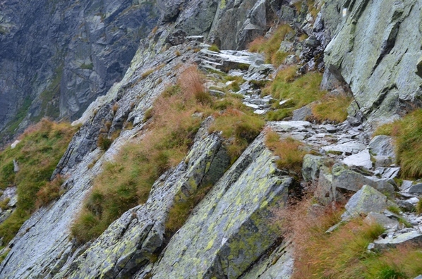 Łańcuchy wreszcie się skończyły lecz wcale nie było łatwiej iść, nachylenie szlaku było bardzo duże, a luźne, ruszające się kamienie mogły spowodować upadek w przepaść.