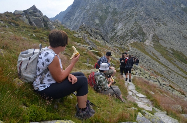 Podczas naszego odpoczynku pogoda zaczęła się zmieniać, czarne chmury burzowe wypiętrzyły się nad Słowacją. Odległe odgłosy piorunów wpłynęły na zmianę planów, nasze panie nie chciały iść dalej, dlatego z Przełęczy Świnickiej, pod opieką Swata ruszyli w kierunku Murowańca.
