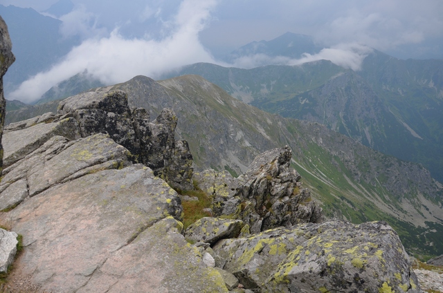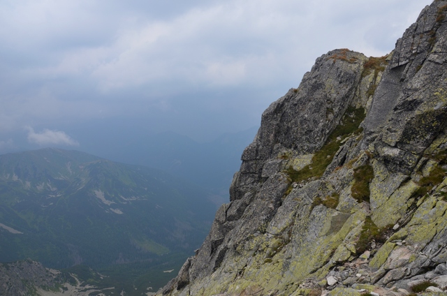 Na samym szczycie panował ogromny tłok. W pewnej chwili rozległ się przeraźliwy trzask pioruna, wszyscy zaczęli więc szybko schodzić w dół, większość w kierunku Kasprowego Wierchu. Parę osób wraz ze mną schodzimy w kierunku Małej Orlej Perci.