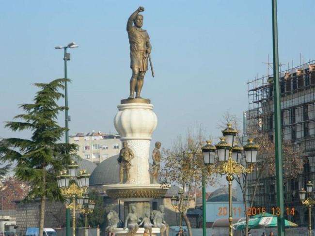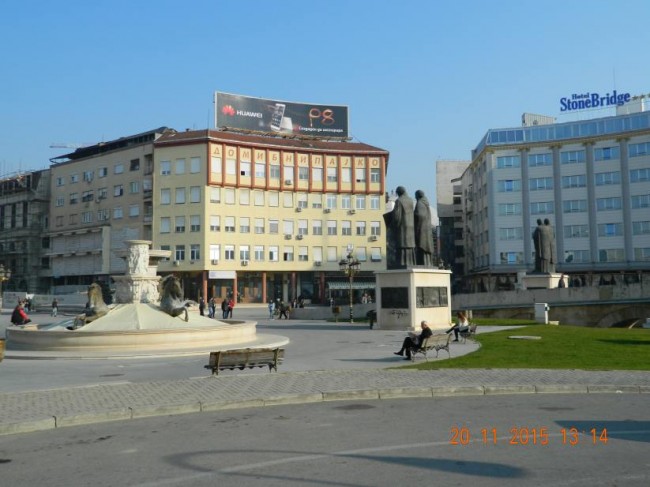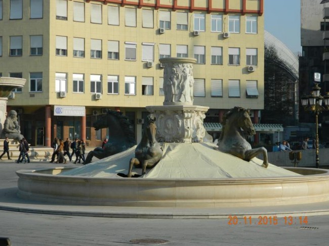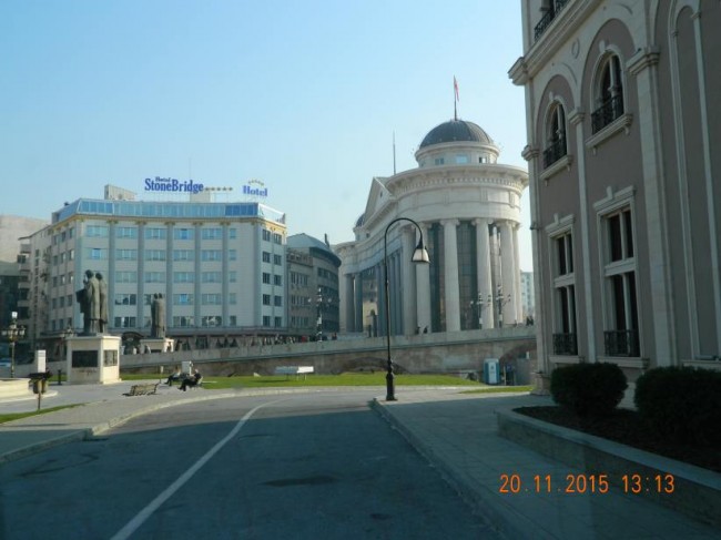 Skopje,ps poprowadził nas o0 dziwo,przez samo centrum miasta.Tam gdzie sa nowe muzea,hotele,pomniki,fontanny.Zakaz wjazdu,nim nawrocilismyudalo misie zrobić kilka fotek,obiektow,wczesniej byliśmy w Skopje z 2 dniowym postojem.
