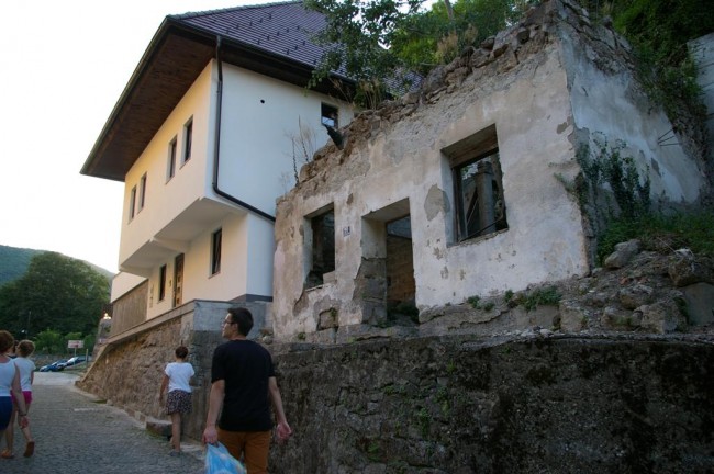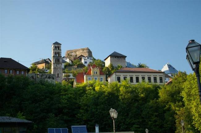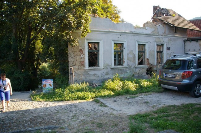 Tak jak pisałem Jajce to niezbyt wielkie miasto, ale urokliwie położone, szczególnie ładnie wygląda gdy wjeżdża się do niego od strony północnego wschodu. Miasto kontrastów, z jednej strony ładnie utrzymane zabytki, wyremontowane domy a z drugiej wszędzie widać ślady ostatniego konfliktu na Bałkanach. Wszędzie straszą (również w centrum) tzw. "rozstrzelane domy". W późniejszej części naszej podróży jeden z zaprzyjaźnionych Boszniaków wytłumaczył nam dlaczego tych domów jest tak dużo i nikt z tym nic nie robi, ale o tym powiem gdy dotrzemy do Sarajewa, a na razie zobaczcie sami jak to wygląda: