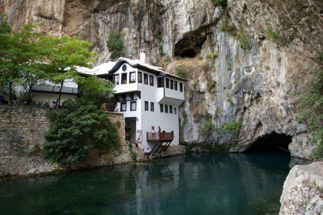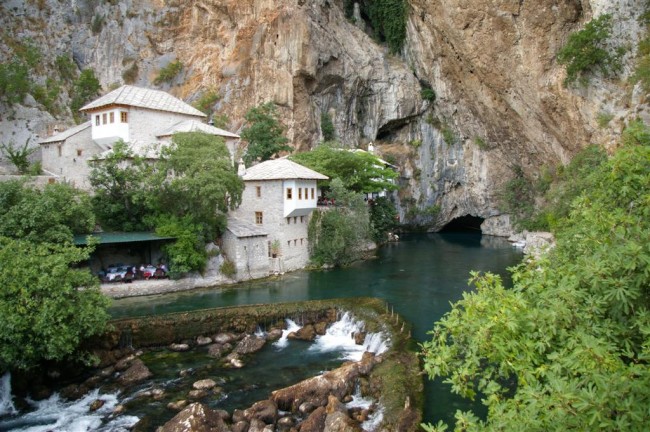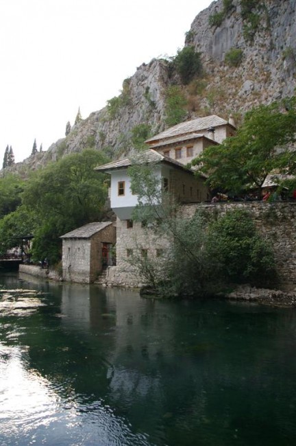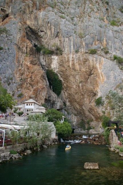 Z Jajce kierujemy się do miejscowości Blagaj nieopodal Mostaru. Blagaj - maleńkie miasteczko które słynie z klasztoru Derwiszów. Klasztor ten, tak naprawdę już nie istnieje, pozostał tylko budynek domu pielgrzyma. Klasztor położony był u stóp wapiennej góry, w której znajduje się jaskinia z wypływającą z niej rzeką Buną. A wygląda to tak: