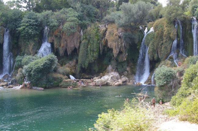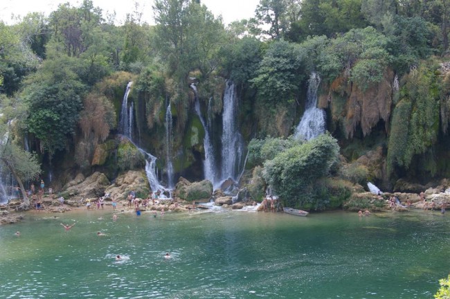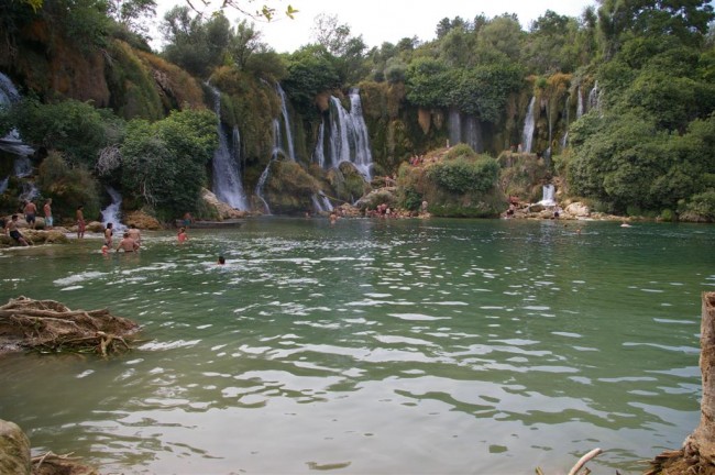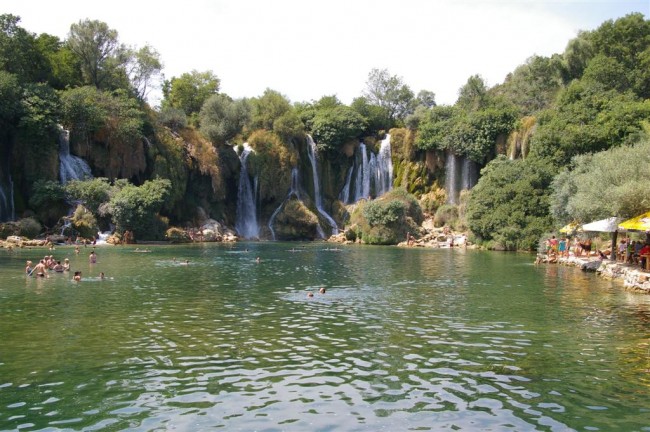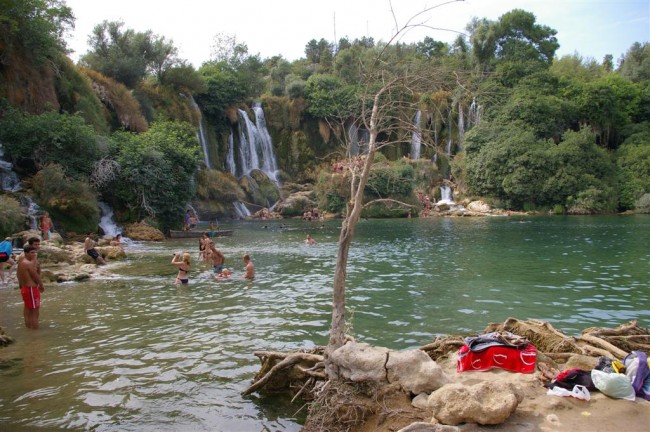 Z Mostaru udajemy się w kierunku wodospadów Kravica. Troszkę trudno nam było trafić bo znaki drogowe jakieś takie nie konkretne :-) , ale w końcu po konsultacjach z miejscowymi trafiamy na miejsce. Miejsce jest przepiękne, niestety ilość turystów troszkę zniechęca, ale dajemy radę. Parkujemy nasze autka na parkingu (nie wiemy dlaczego, bezpłatnym) i udajemy się z "buta" w kierunku wodospadów. To co zobaczyłem zdecydowanie nastroiło mnie pozytywnie do tego dnia. Woda ciepła, wodospady gwarantowały "bicze wodne" - miejsce wyjątkowo urokliwe.