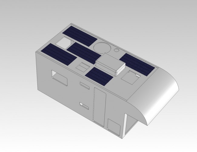 Ten obszar z przodu po prawej , który na rysunku jest wolny, w rzeczywistości zajmuje antena Sat. Myślałem jeszcze nad założeniem solarów na zabudowie nad kabiną, ale ze względu na dużą krzywiznę i ułożenie pod kątem, myślę że nie ma to sensu.