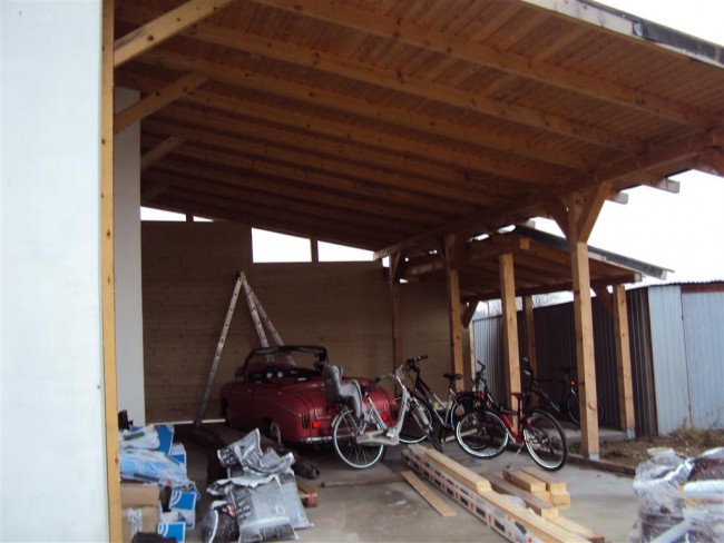 o k..... wa na bogato robisz,pelne deskowanie dachu wiaty . Heblowane krokwie....,Musisz kochac to czerwone cudenko.Wiem,ze nie lubisz mnie zbytnio,ale za ta skarpete to pelen szacun |