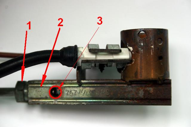 7. mając palnik "w garści" czyszczę go wydmuchując zanieczyszczenia z wnętrza korpusu - z tej części z napisem JUNKERS (foto).