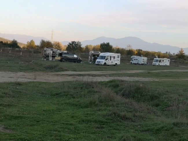 Zdecydowaliśmy się po tych przejściach na nocleg, nad zalewem w Montanie. Stanęliśmy na parkingu, na koronie zapory, z widokiem na jezioro. Wydarzenia dnia, w tradycyjnym, trojzałogowym gronie, omówiliśmy przy lampce wina. Parking w Montanie 43.39022 23.21551