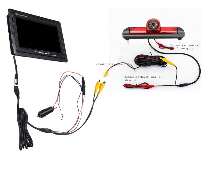 *** Można i najlepiej będzie by zasilanie kamery i monitora było "po stacyjce", wówczas obraz z kamery jest do dyspozycji w każdej chwili a kamera wyłączy się po wyłączeniu silnika.