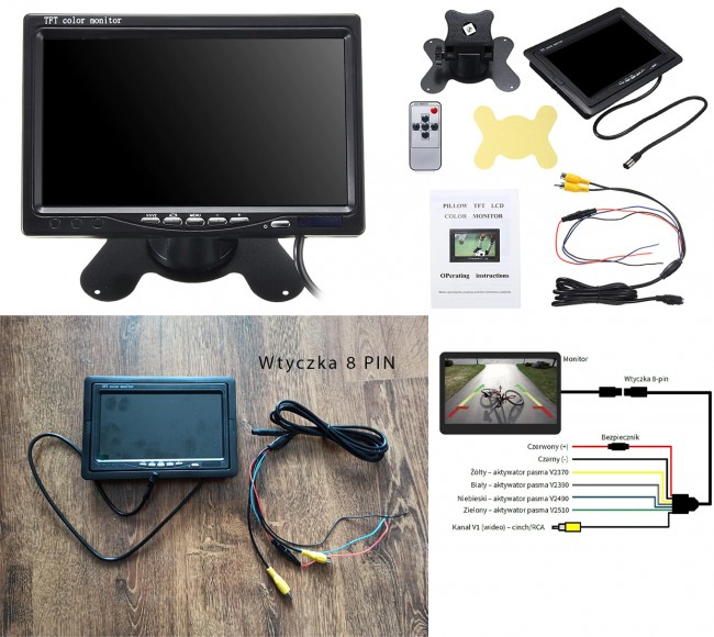 Mam jeszcze taki monitor jak na zdjęciu, też nówka, chciałem go zamontować w sypialni i mieć podgląd na to co się dzieje na zewnątrz. Podobno można do niego podłączyć 2 kamery. Czy tymczasowo mógłbym go podłączyć do tej kamery? Oba posiadają wtyk cinch. Mnie nie zależy na wideorejestracji ani na dźwięku, tylko na dobrym podglądzie przy cofaniu. Wzrok już nie ten co dawniej. Jest to monitor 7 calowy. W styczniu poszukam monitora w lusterku.