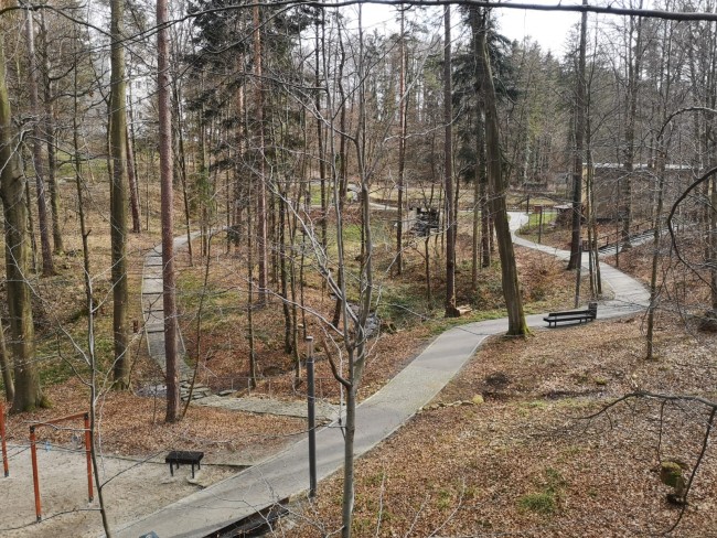 27.03. Załadowaliśmy kampera i ruszyliśmy w kierunku jedynych opolskich gór. Przez Prószków, Prudnika, Jarnołtówek do Podlesia na końcu świata gdzie kończy się drogą przed czeskim lasem, z pięknym widokiem na góry Opawskie. Następnie przez Konradów dojechaliśmy do Głuchołaz 50.30440, 17.38367, gdzie stoimy przy parku zdrojowym, który wcześniej obeszliśmy.