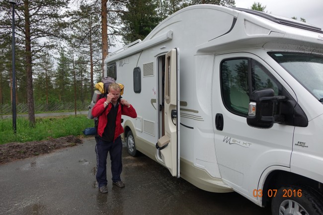 DSC02048.jpg Tuż za granicą zabraliśmy moknącego autostopowicz, którym okazał się rodak z Bydgoszczy. Podwieźliśmy go do Rovaniemi. |