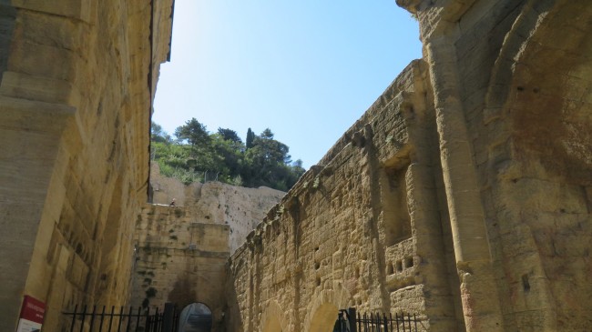 Wrażenie robi teatr antyczny. Zobaczyliśmy go tylko z zewnątrz bo podobne widzieliśmy w Turcji i w Tunezji. Ogrom robi wrażenie. 36 m wysokości . A jego wielkość musiała robić na współczesnych takie samo wrażenie jak dzisiejsze stadiony (nazywane często arenami). Funkcje te same i ogrom ten sam. Czujemy się przy tych murach malutcy.